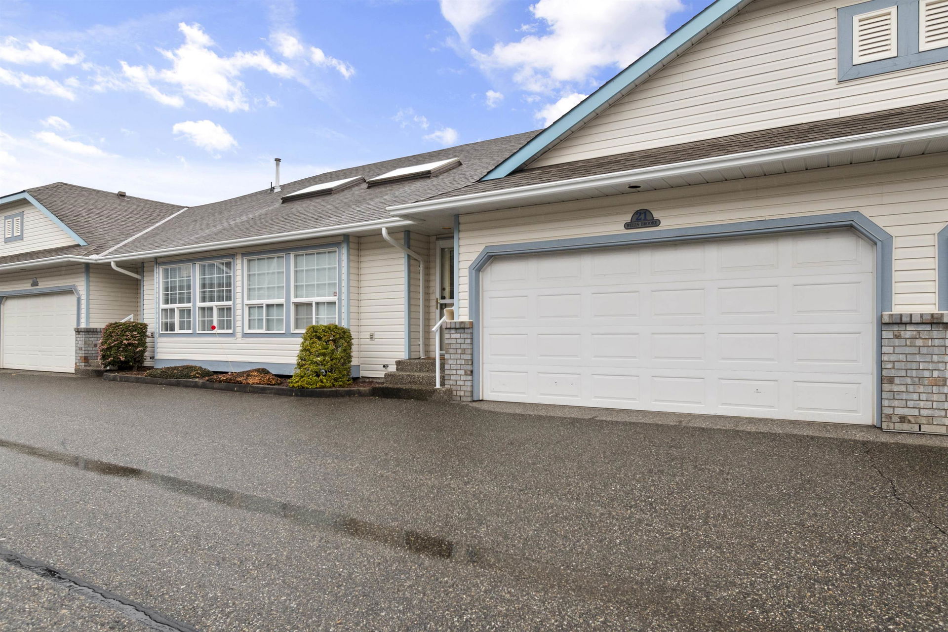 Welcome to Wellsbrooke, one of the most desired freehold 55+ townhouse complexes in Sardis. This is a very well run strata and located within just minutes of all amenities. This Rancher with a loft offers a large livingroom/dining area that flows into the kitchen, eating area and family room with a bedroom on the main. Upstairs is a huge loft area for a tv room or grandkids play area while they visit and a large second bedroom. Double Garage lends lots of space for a workshop/parking for 2. RV parking available $20pm subject to availability. Brand new Hot Water Tank just installed. Rentals allowed (tenant must be 55+). Pets allowed.